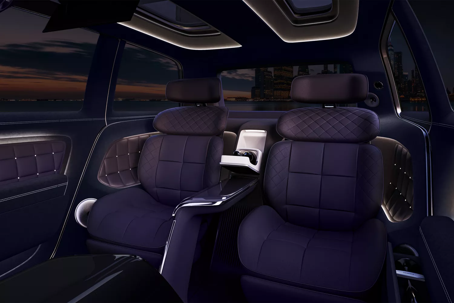 Genesis intends for the concept Neolun luxury electric SUV to look inviting. The cabin is accessed through pillarless coach doors, promising an oasis of luxury to its occupants.