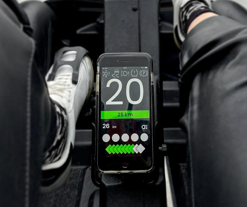 A left-side mirror and typical summer tires are also included. Inside the Frikar, you will find a tablet or phone holder and a USB charger to complete Bluetooth compatibility. You will access Frikar’s telemetrics here (pictured below).
